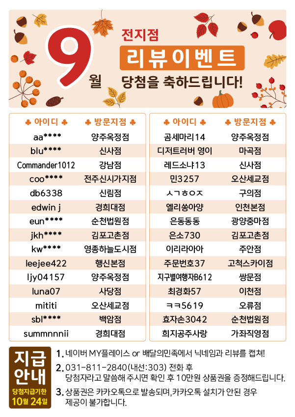 당첨자발표 9월