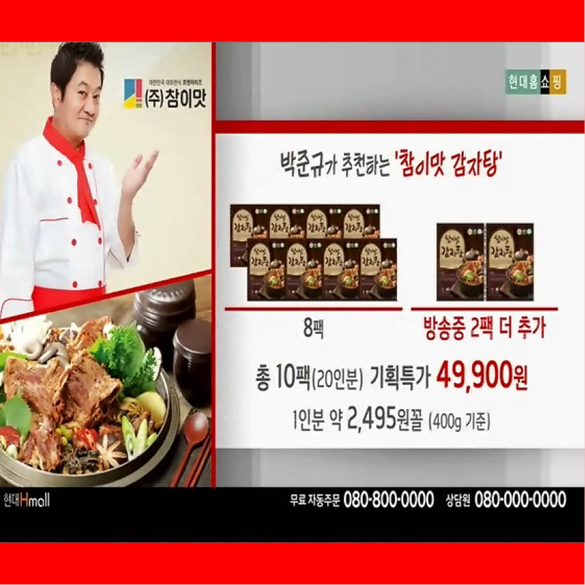 현대홈쇼핑 - 참이맛 감자탕팩 완판(배우 박준규 부부 ...